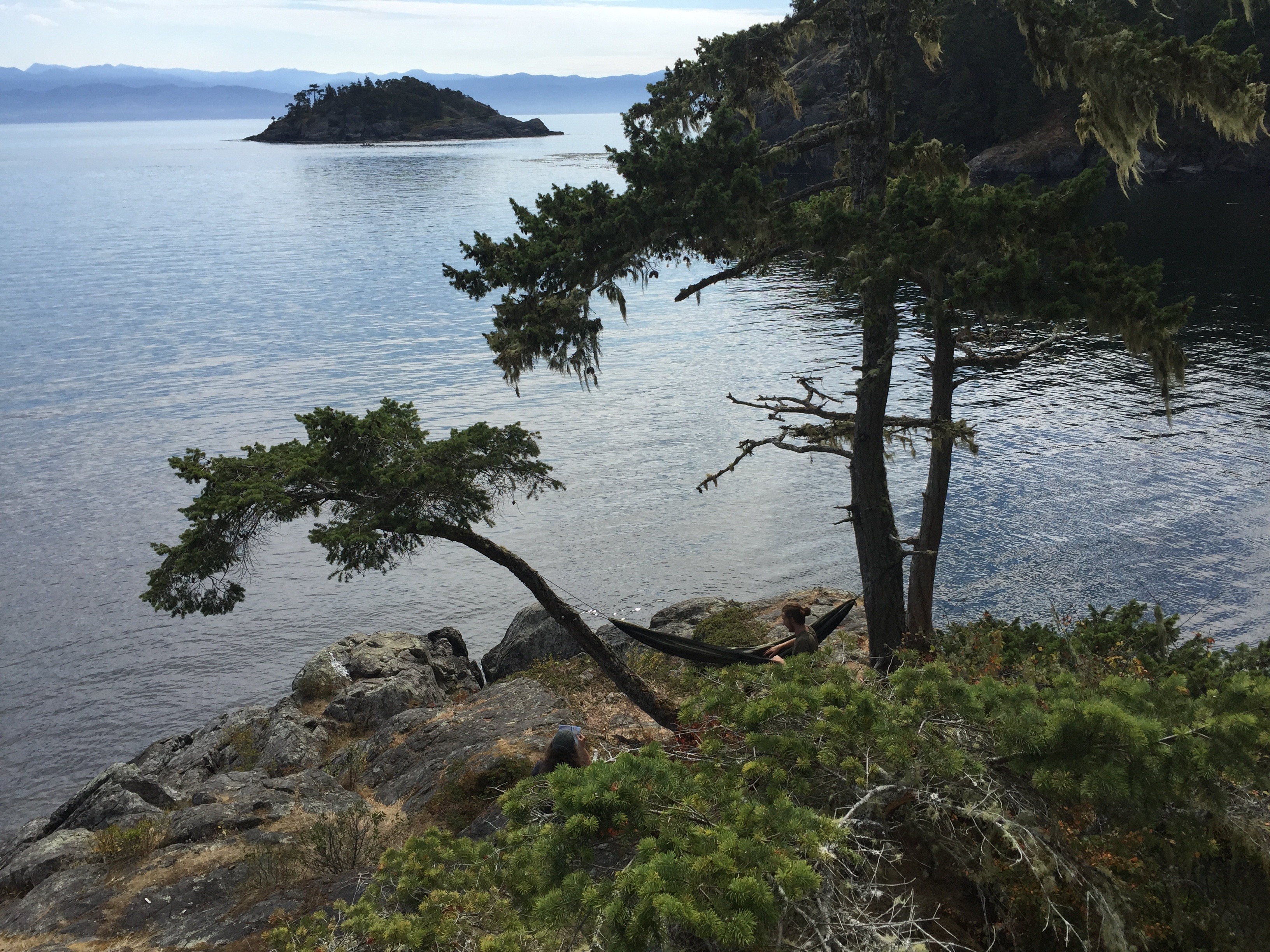 Levar’s been sick for the past several days, so we decided to post him on whale watch in a hammock on his own private “island”, giving him time to rest and recover. He had a commanding view of the Strait and the Olympic Range whilst scanning for sea life.