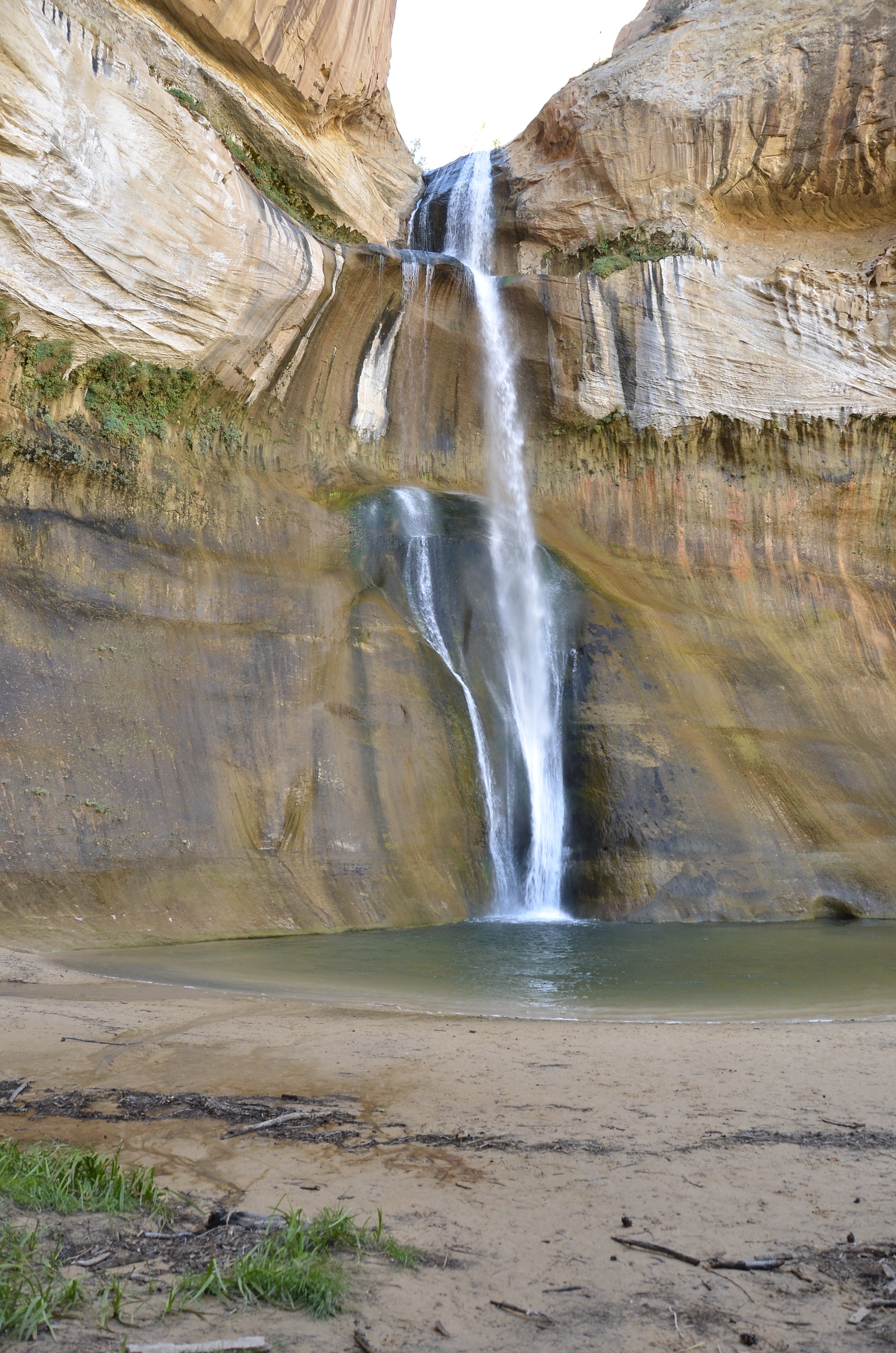 There are also supposed to be Fremont culture granaries high on the canyon walls, but they are so well camouflaged that we could not spot them. Maybe next time. Finally, at the end of the hike, one enters a wetland zone. Cattail, common reed, river birch, cottonwood, false soloman’s seal, and willow are among the plants thriving in the bottom of the canyon. As one rounds the bend the sound of water picks up and you soon realize you are listening to a waterfall.