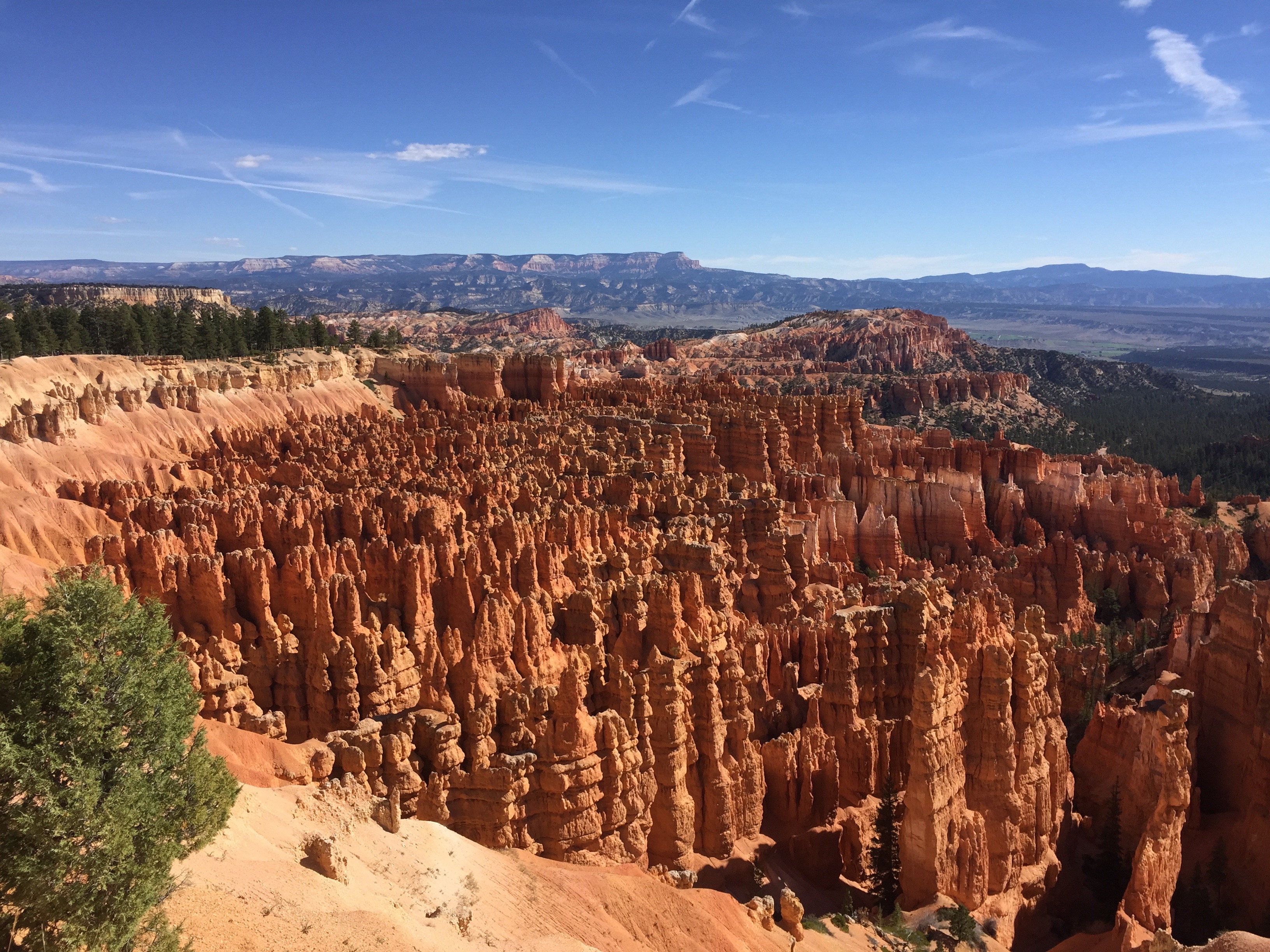 Today we returned to one of our favorite National Parks, Bryce Canyon. It is almost always cool in Bryce, for the elevation is between 8,000 and 9,000 feet. That’s a good thing. The only drawback, though, is that I always need 3 to 4 days to acclimate to higher elevations before I can undertake serious physical exertion. Mandy’s in the same boat. The last time we were here, two years ago, we hiked down into the canyon without acclimatization. We were huffing and puffing like mad and our hearts were pounding in our chests, with the slightest rise in the trail. It was well worth it, though, as the canyon is so much more magical when you go into the land of the hoodoos.