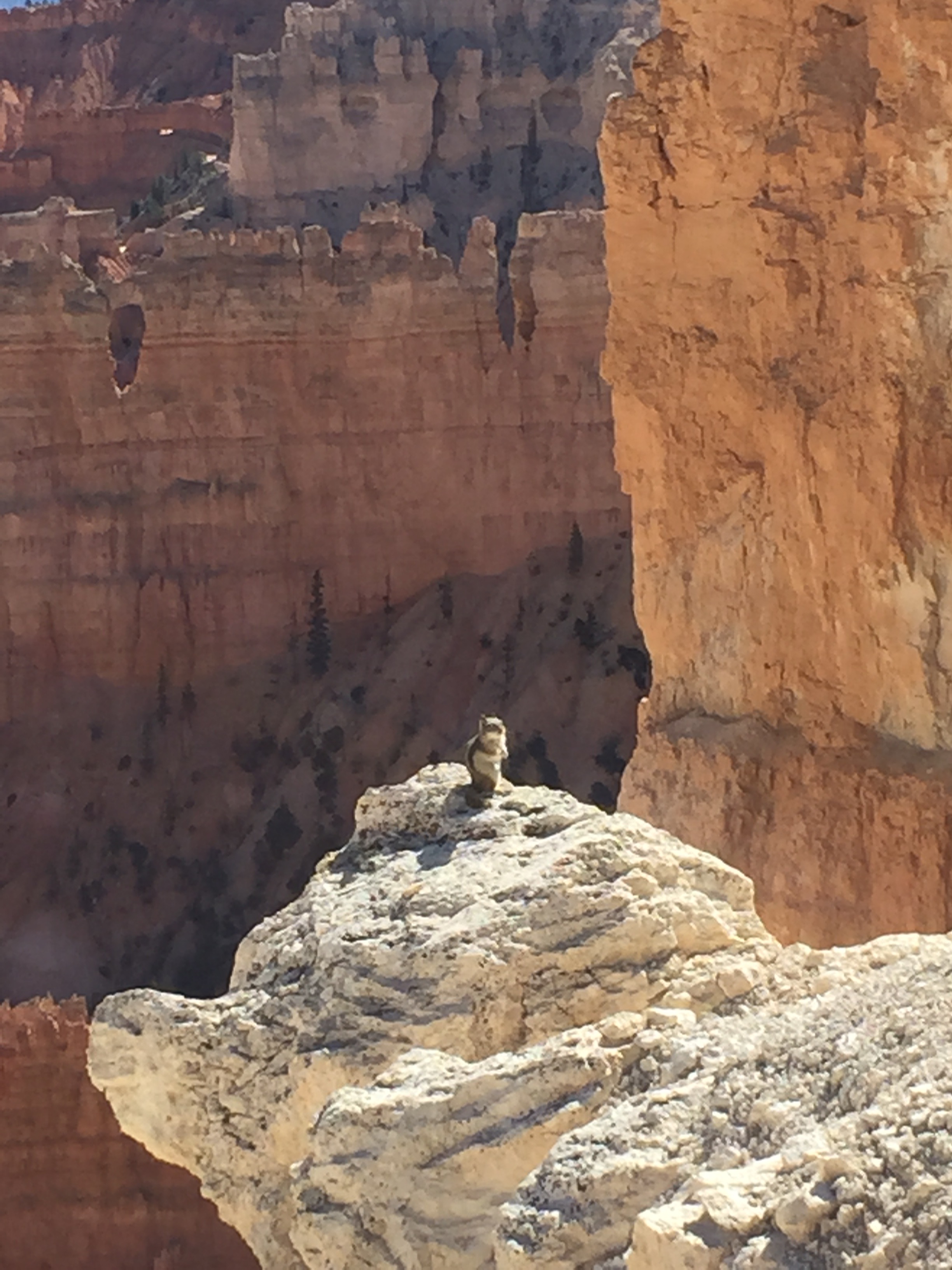 I remember back in 2005, visiting the Grand Canyon and being struck by how still and quiet it was once one leaves the bustling perimeter. We didn’t go far down the trail, but the memory of the grandeur and solitude will always be with me. The same is true at Bryce Canyon; once one leaves the crowds behind one is witness to a whole other world. Words can’t adequately describe the beauty of the landscape below the rim of the canyon. The hoodoos begin to take on an anthropomorphic presence; like being in the land of giants.
