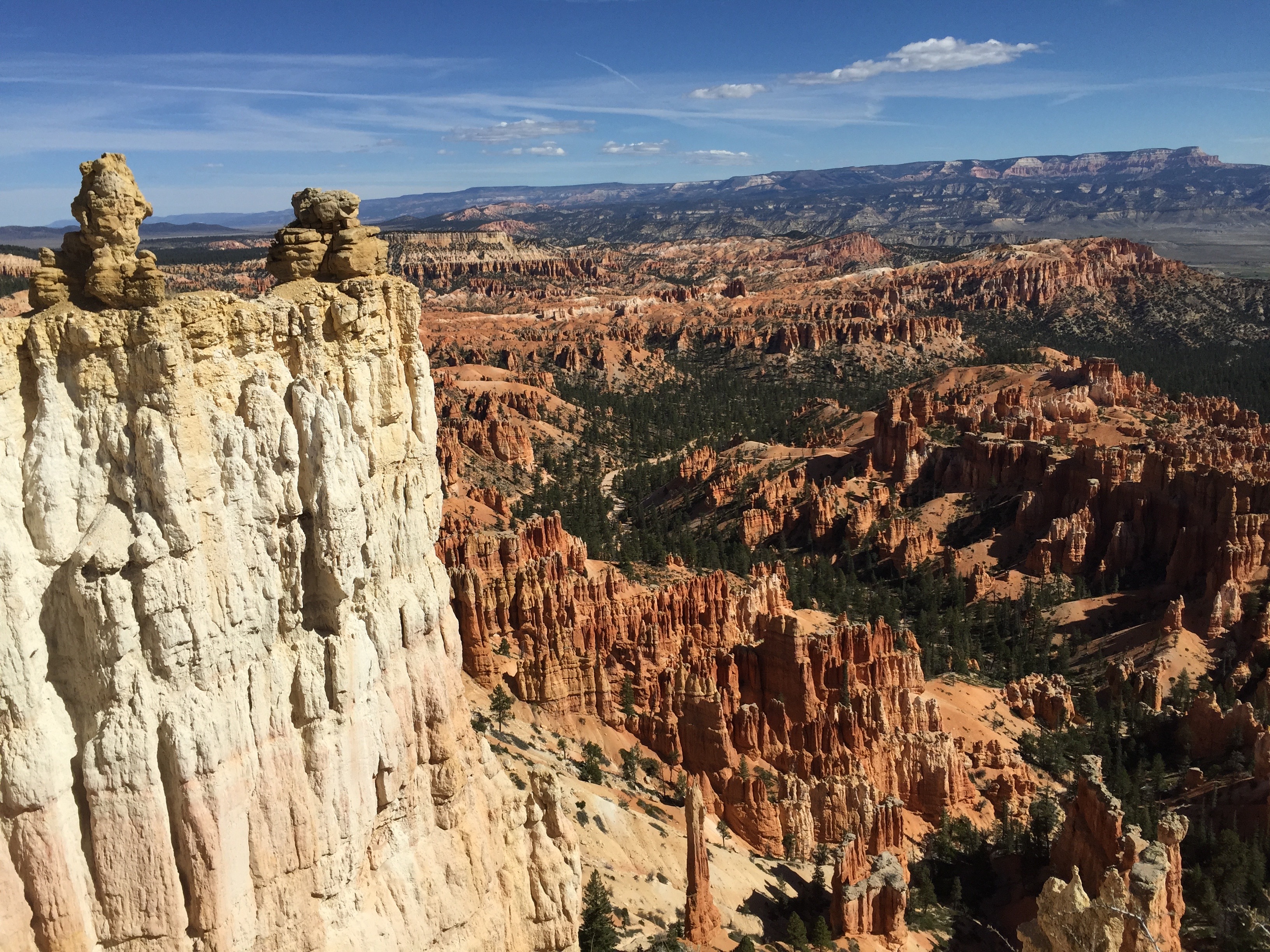 The hoodoos, arches, canyons and other otherworldly structures are interesting to see as they are different from every angle. Oh, and the colors are out of this world! There is the familiar (to the Utah desert) red sandstone in every shade, oranges and even purple. If I was a landscape painter I would love to soak in the majestic scene and render it on canvas. That said, the scene is so hard to convey in mere photographs and similarly only the best painter could convey the immensity of impressions and grandeur of it all. I’ve done my best to photograph some aspects of the canyon, but the digital image is a poor means to describe all that one sees and feels peering into that landscape.
