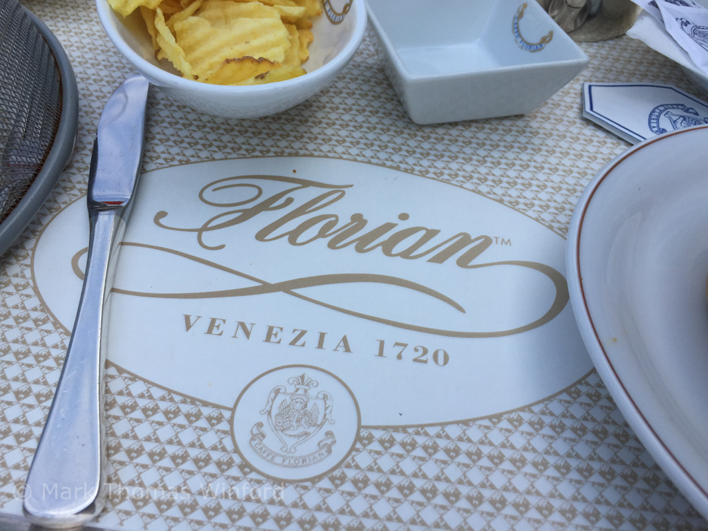 After retrieving our backpacks from the neighboring baroque Ateno San Barso church, where one can take in nightly performances in the soaring church space a selection of Antonio Vivaldi’s classics, such as The Four Seasons, we crossed the sprawling Piazza di San Marco to a world-famous institution – Caffè Florian – which has been a Venetian social and intellectual hub since its opening day, way back in 1720. It is now the oldest café in all Europe: