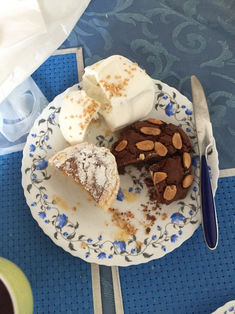 We were served a delicious (but overpriced) lunch of Italian-style vegetarian quiche, vegetables served with chips, flavored fizzy Italian “Spritzi” drinks, Caffè Florian‘s famous “blooming tea,” strong Italian coffee and finally a delicious assortment of biscotti for a mouth-watering dessert. As I sketched and we ate, we enjoyed the musicians who entertained the diners with jazz and classical standards from the outdoor stage at bustling Caffè Florian. I was later, on our first taxi ride from the Stazzioné Termini train station in Rome, to leave my backpack containing my precious sketchbook, watercolor set, colored pencils, iPad and newish Sony mirrorless digital camera full of fantastic shots of our adventure so far, in the back of the taxi. The backpack and contents were never recovered – but our trip insurance eventually (mostly) paid up, once I had a “police report” signed by the Rome police to submit! Very sad to lose everything, but if that would be the worst thing to happen during our 5-week adventure in Europe, then it wasn’t a bad vacation at all!!