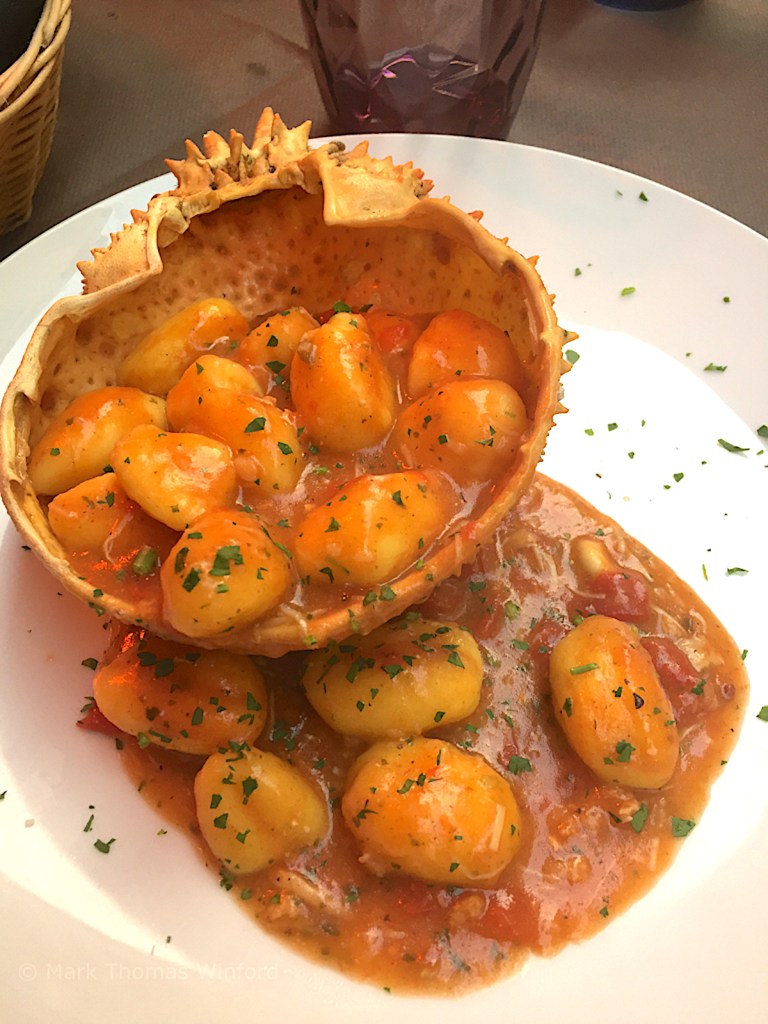 I was overcome by the sense of what an unlikely city Venice really is – perched as it is, so ephemerally on the laguna. We rounded out this memorable day with another marvelous dinner at a true Italian trattoria. Tonight Mandy had delicious eggplant parmigiana, while I had crab gnocchi, served complete in an appetizing crab shell!