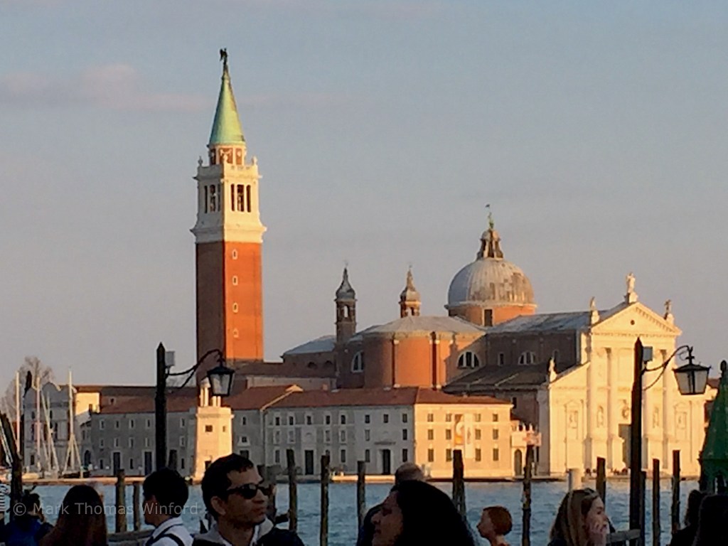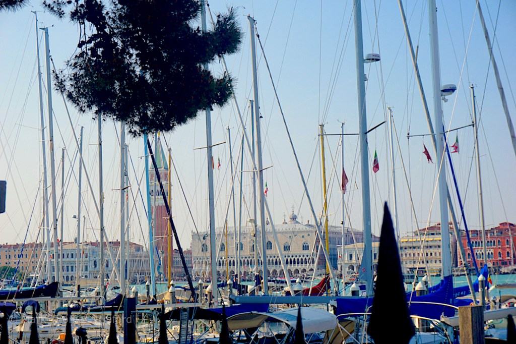 After the campanile, we strolled along the San Giorgio Maggiore island bayside promenade, observing the city through the yacht harbor.