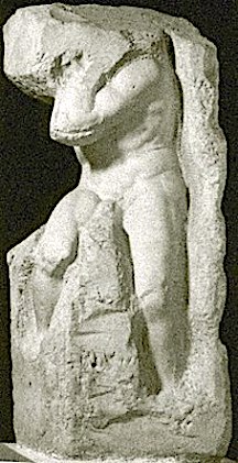 Upon arriving at the Accademia Gallery, getting my ticket secured with mariogesu, my guide for this great adventure, and going inside to meet the other tour members, we were led by Mario to the great hallway leading up to the rotunda where the collosal 17-foot-high David (1504) statue is located. This great hallway is home to some other, rather extraordinary, Michelangelo statues – “the works, known collectively as The Captives, each show the figure struggling to free itself, as if from the bonds of the rock in which it is lodged. The works give a unique insight into the sculptural methods that Michelangelo employed and his way of revealing what he perceived within the rock,” from Michelangelo on Wikipedia.