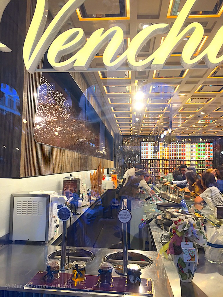 On the way from the Apple Store to my next stop, I passed the world-famous chocolate and gelato shop, Venchi, just off the Piazza della Signoria. I didn’t go inside, for it was extremely crowded with long lines, but I did peer longingly through the windows. The store was packed to the rafters with every kind of chocolate imaginable, there was even an enormous chocolate “waterfall” to make any Umpa-Lumpa proud, along the entire length of the wall behind the sales counter.