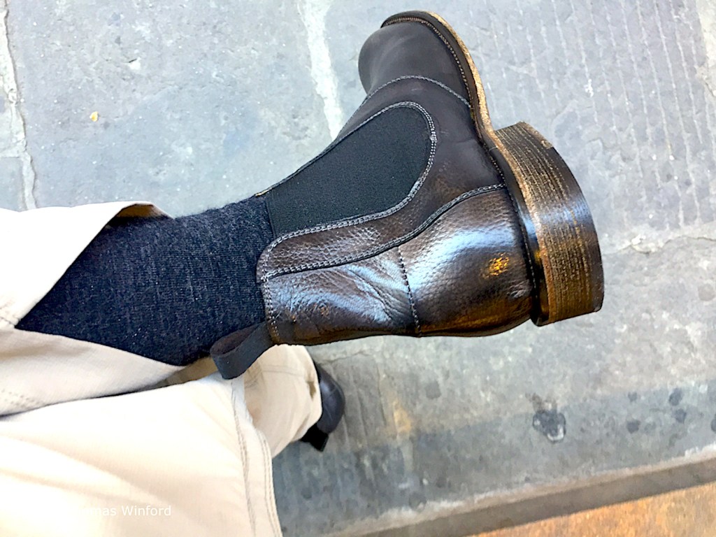 My shopping streak was to continue – on my way to the central post office, I passed a leather goods store, Diva Leather-Firenze, just off the central Piazza della Signoria. Florence is world-renowned for the quality of its leather work. There is even a leather-working guild that sells items directly to the public in Florence’s Piazza di Santa Croce – where I bought a finely-worked Florentine leather belt on another day. My goal was to replace a pair of fine Italian leather ankle-high black leather boots I had previously misplaced at our house in Austin, Texas.