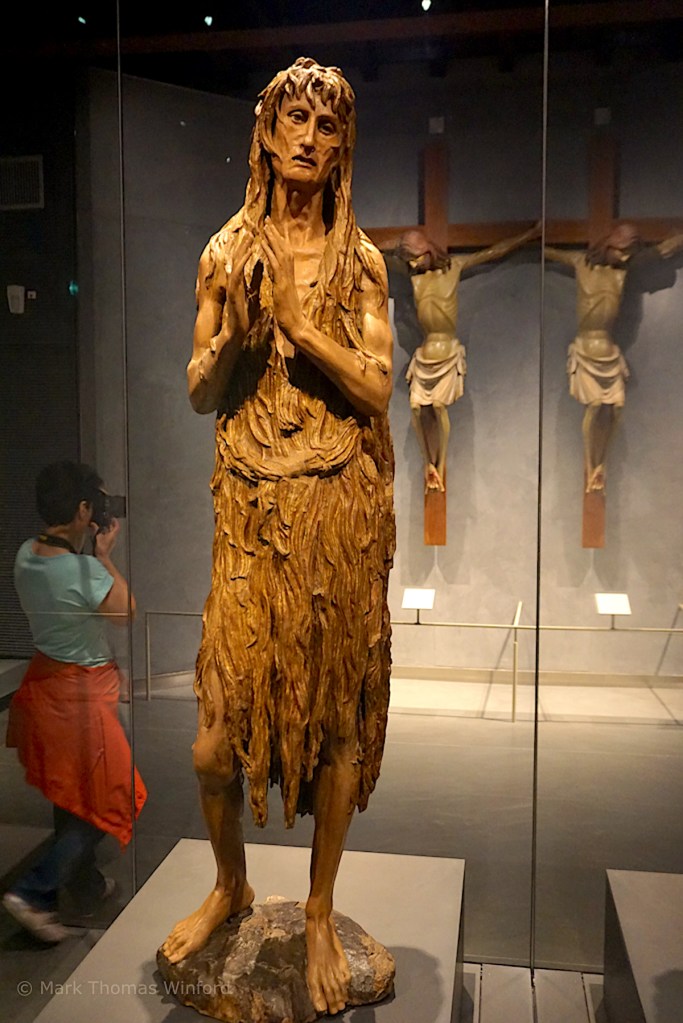 Inside the museum were other works of art, contemporaneous to the Duomo, including a sculpture which touched me, a bedraggled-looking Mary Magdalene. It turns out that some of the famous works of art found around Florence can be seen “live” on the city streets – an entertaining phenomenon which we also witnessed in the streets of Rome.