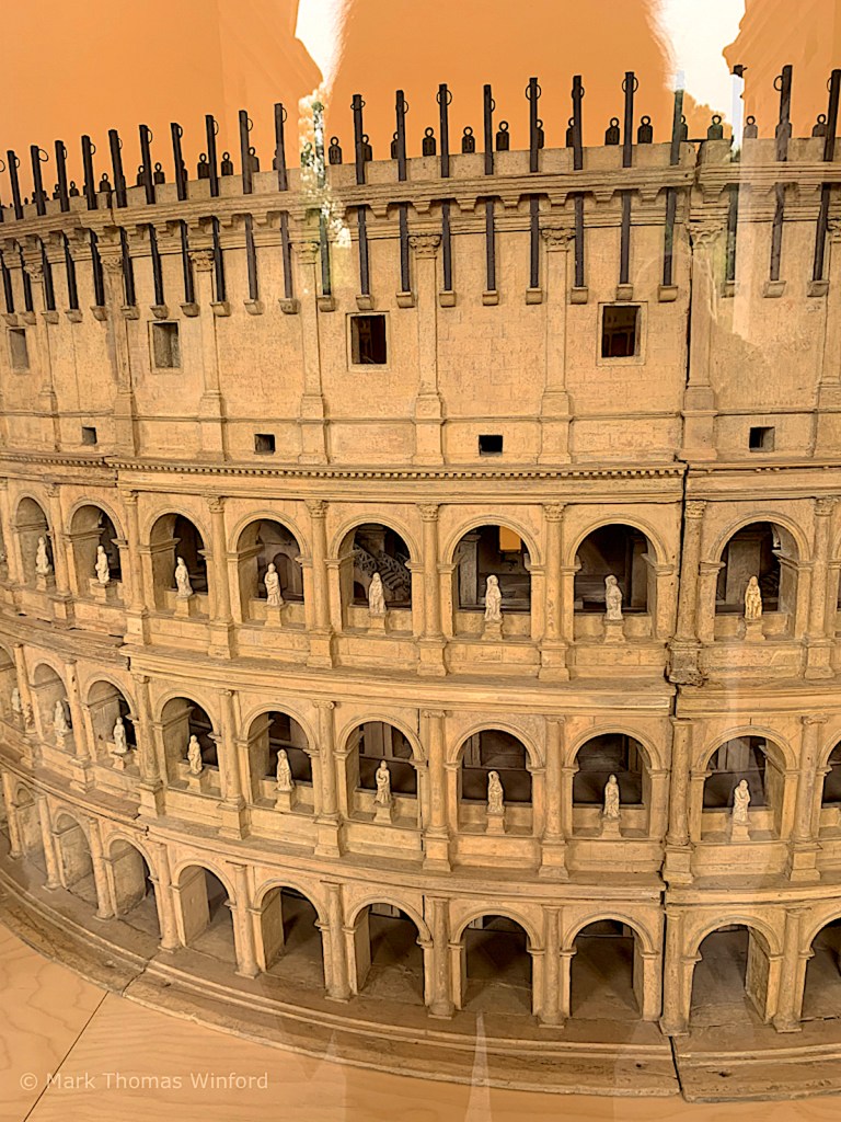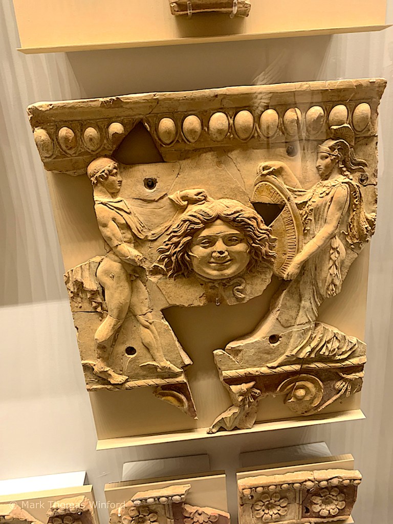 Once on top, we entered the Palatine Museum. This museum contained some excellent archeological relics dating back to Paleolithic times, many artifacts, a model of Romulus, Rome’s founder’s hut on the Palatine Hill and a worthwhile video showing how Rome grew over the 7 ancient hills on the Tiber River to eventually dominate all of Italy.