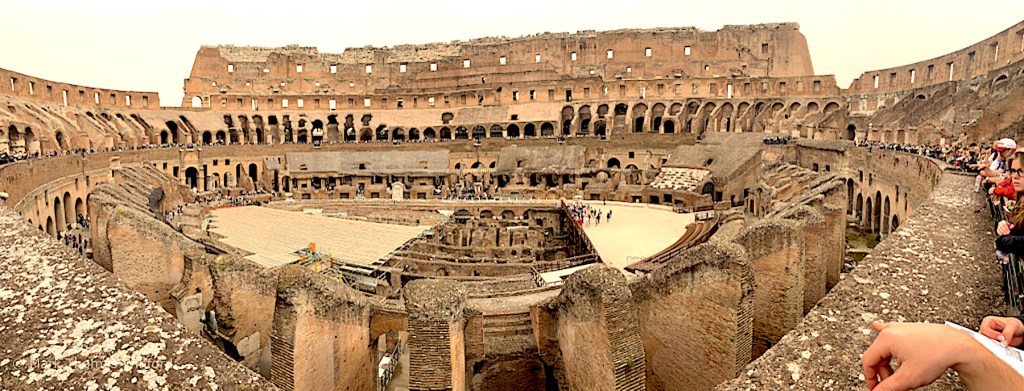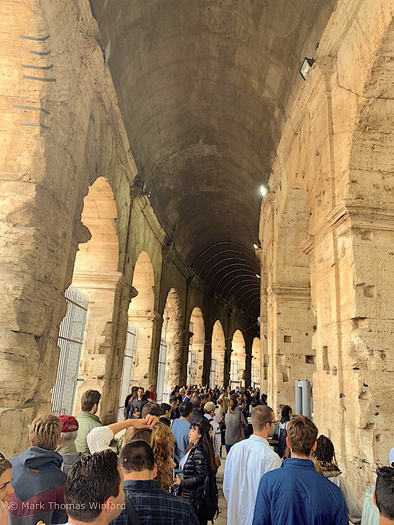 We did not take the tour to the pit areas where the gladiators and animals were held before battle – I kind of wish we had for a different perspective of the colossal structure. Once inside the body of the Colosseum, we walked all around, observing the massive tiered seating areas and the vast network of tunnels and rooms that were below the Colosseum floor. We even saw the box that the emperor and senate watched from.