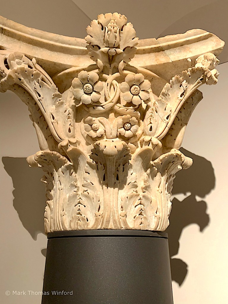 Today was a gray, drizzly, dreary day. There were partial remains of ancient pagan temples, statues – mostly headless and single freestanding and multiple marble columns abounded, some supporting pagan temple pediments and friezes.