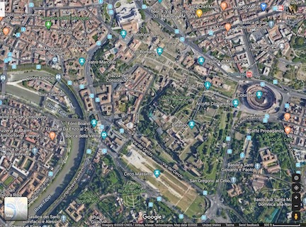 After the Forum, we climbed some very steep stairs to Palatine Hill. The views from on high are magnificent, with the Circus Maximus lying in the Valley of Murcia and the Aventine Hill to one side, and the imperial Roman Forum and the city of Rome on the other.