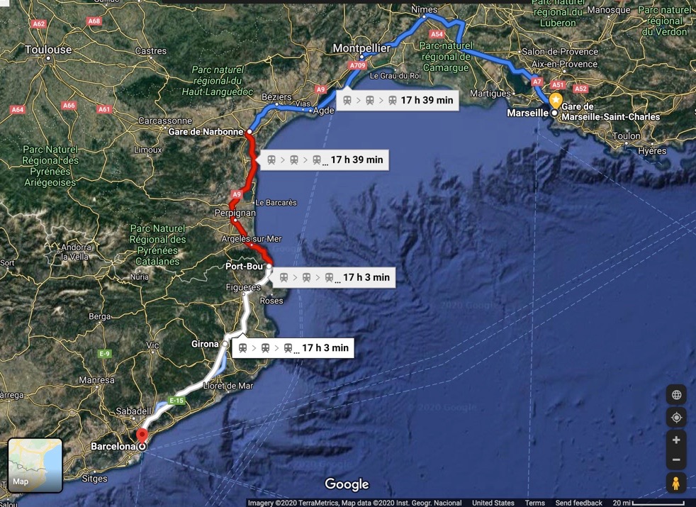 This morning we woke early, got our bakery treats, and headed into the Marseille St. Charles train station to board an 8:01 a.m. high-speed train bound for the Spanish border and the magical city of Barcelona! The high-speed trip took only 4 hours, 37 minutes, and ran mostly along the coast.