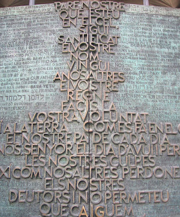 In September 2008, the doors of the Glory façade, by Subirachs, were installed. Inscribed with the Lord’s prayer, these central doors are inscribed with the words “Give us our daily bread” in fifty different languages. The handles of the door are the letters “A” and “G” that form the initials of Antoni Gaudí within the phrase “lead us not into temptation” (from Wikipedia)