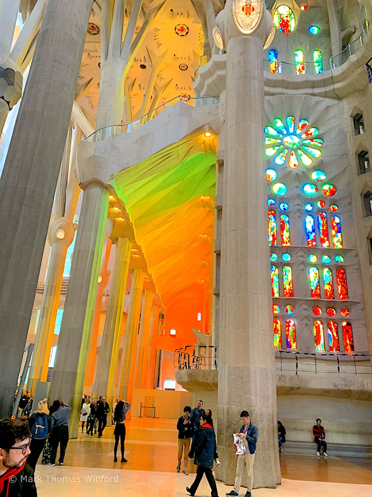 From here we passed back into the interior, gazing along the double aisles, looking toward the crowning Glory Façade from the inside. The afternoon light filtering in through the western window cast an awesome orange/yellow/red glow on the interior elements.