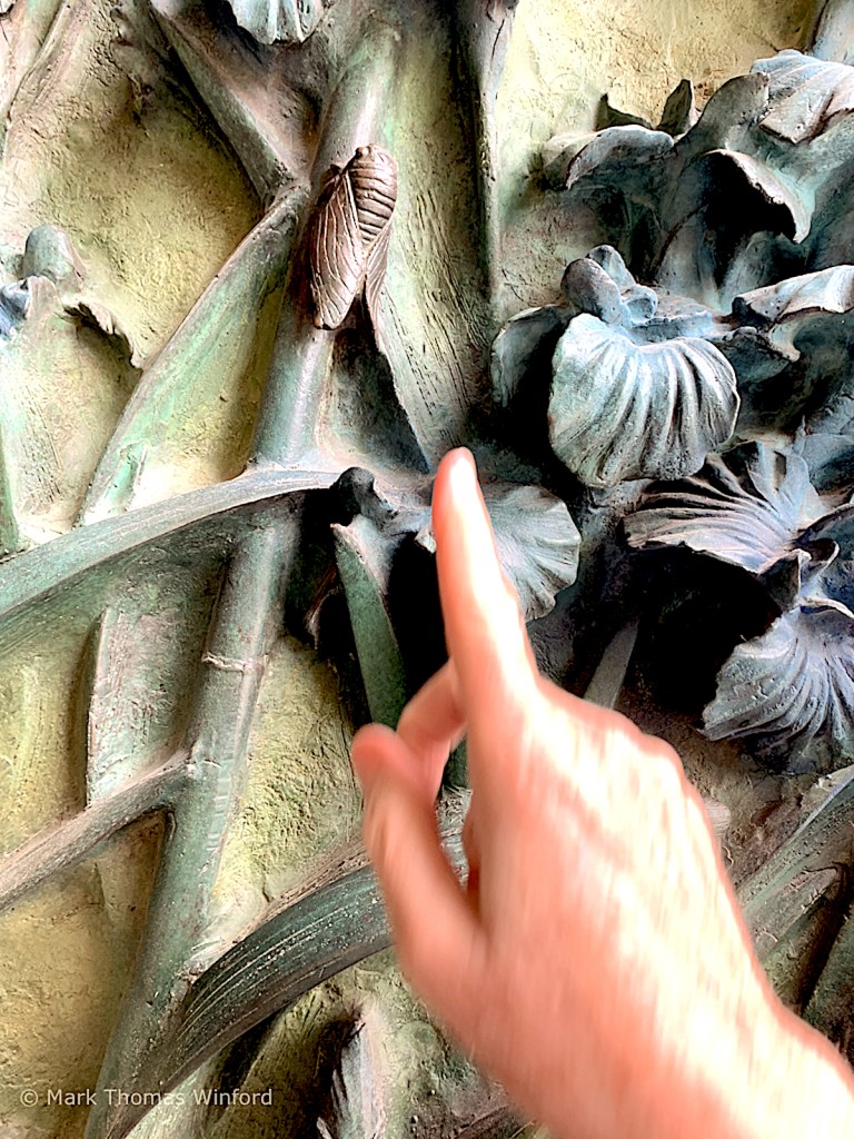 Our audio guides were a wonderful introduction to the architecture, craft, history and theory behind the Sagrada Familia. We approached the main entry doors, which were a wonderful casting of copper and bronze. There was so much detail to the doors, there were even locusts and snails sculpted into the metal relief.