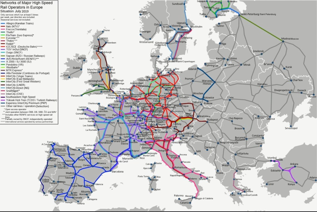 The ride into Angoulême from Bordeaux was a whiz! It only took 35 minutes to travel 107 km ( 66 miles)! The TGV trains travel at a top speed of 322 km/hr (200 miles/hr), such that the Bordeaux St. Jean (in the southwest of France) to Paris Montparnasse Station (in the north of France) TGV high-speed train trip takes only 2 hours, 9 minutes, covering a distance of 499 km. (310 miles)! “A TGV test train set the world record for the fastest wheeled train, reaching 574.8 km/h ,(357.2 mph) on 3 April 2007. In 2007, the world’s fastest scheduled rail journey was a start-to-stop average speed of 279.4 km/h (173.6 mph) between the Gare de Champagne-Ardenne and Gare de Lorraine on the LGV Est, not surpassed until the 2013 reported average of 283.7 km/h (176.3 mph) express service on the Shijiazhuang to Zhengzhou segment of China’s Shijiazhuang–Wuhan high-speed railway.” (source: Wikipedia.com) It is amazing how connected all of Europe is by high-speed trains:
