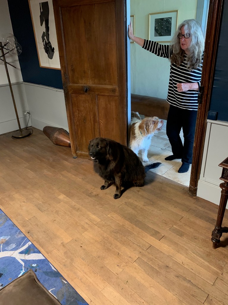 S. showed us up to our very comfortable second-floor bedroom. The windows, set deep in the massive stone walls, looked out on the river below, as well as the comfortable terrace meant for long afternoons lingering over a good book. We soon fell in love with S. and G.’s fabulous dogs.
